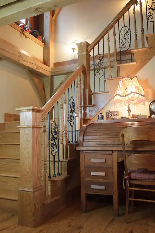 If your eyes roll immediately to metal accents in the room, like lighting, door hardware, and artwork, then you may want to showcase more iron balusters. However, if you are looking toward “just a touch” of iron as a stand-out feature in the stairway, then wooden balusters may dominate your stairway.