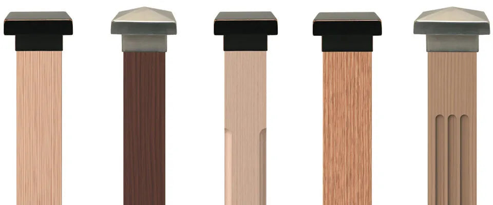 Two decorative Metal Newel Caps are available to fit 3”, 3-1/4” and 3-1/2” square wood posts. Available in Low Sheen Black, Matte Nickel, Oil Rubbed Copper, Satin Black and Stainless Steel, the caps enhance a variety of home styles including Contemporary, Retro, Modern and Craftsman.