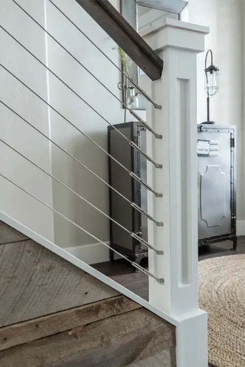 Introduced by Stair Parts Now in 2016, our cable and tube systems include a variety of wood and metal newels, marine-grade stainless steel cable, and brushed stainless steel tubes. As part of the Linear Collection, the stainless steel option creates a sleek stairway appearance.