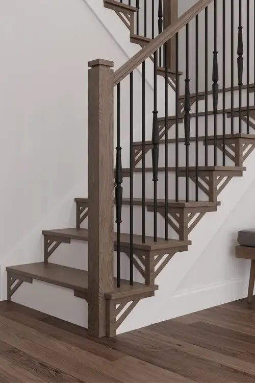 The modern, on-trend look of our stair brackets comes in two new designs. Select from a sleek, straight Mission-style design or a softly-curved shape. Each wooden bracket comes in left- and right-hand configurations. Available in Red Oak for staining and Birch for painting the decorative brackets complement any home’s style.