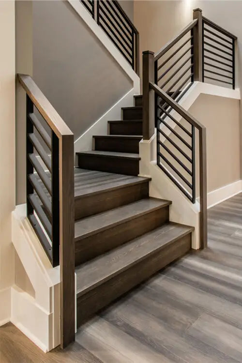 “Waterfall designs are gaining in popularity throughout the home,” says Beth Galigher, director of marketing and new product development for Stair Parts Now Stair System “You see the same free-flow design in kitchen islands, countertops, and vanities. Now it’s catching on with stairway systems.